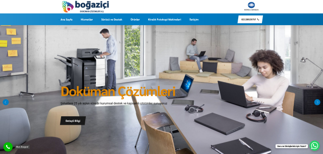 Türkiye’nin en büyük fotokopi makinesi satış ve teknik destek firmalarından biri olan Boğaziçi Doküman Çözümleri Büro Makinaları A.Ş. için kurumsal gücünü ve sektördeki lider konumunu yansıtan kapsamlı bir web tasarım çalışması gerçekleştirdik.